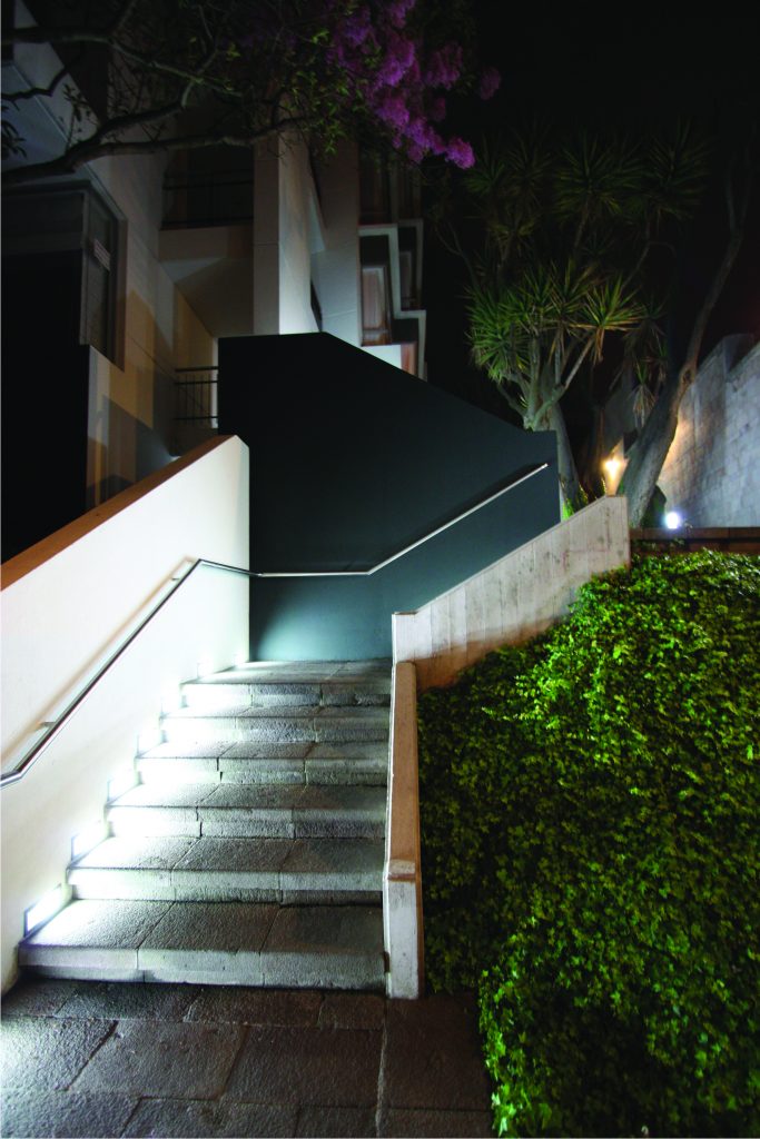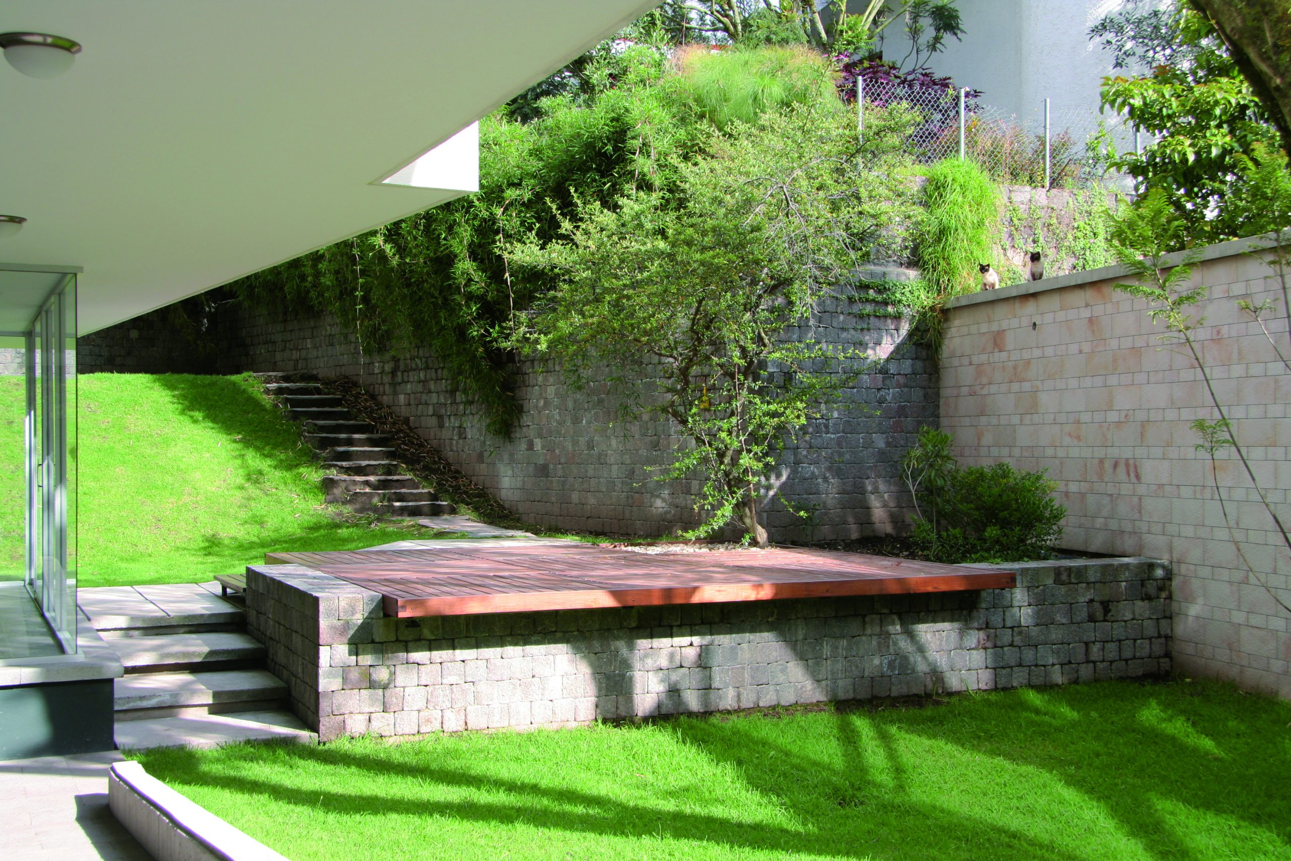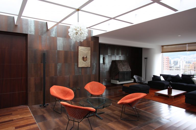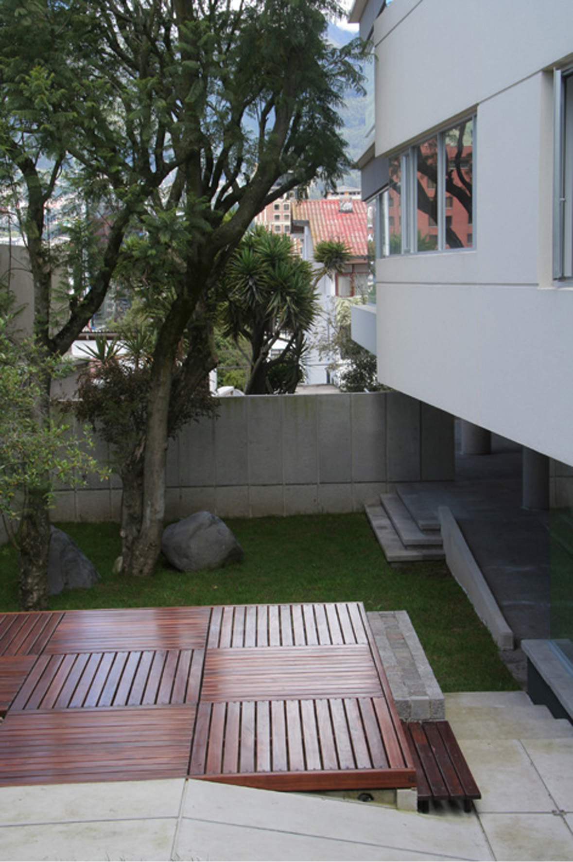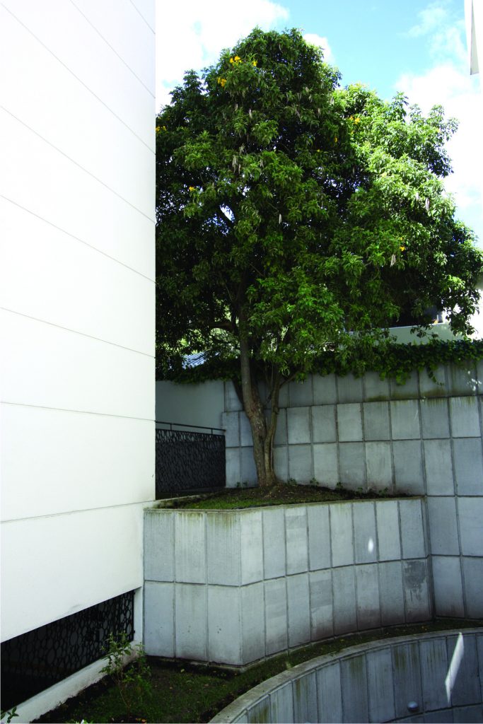 Dos torres de 6 pisos con apartamentos simplex y dúplex, muchos con terrazas y chimeneas. Las fachadas frontal y lateral se caracterizan por unas proyecciones volumétricas compuestas de bandas horizontales en cristal y acentuadas por planos en granito negro; los principales ambientes sociales y comunales se relacionan con los jardines y arborización conservada.