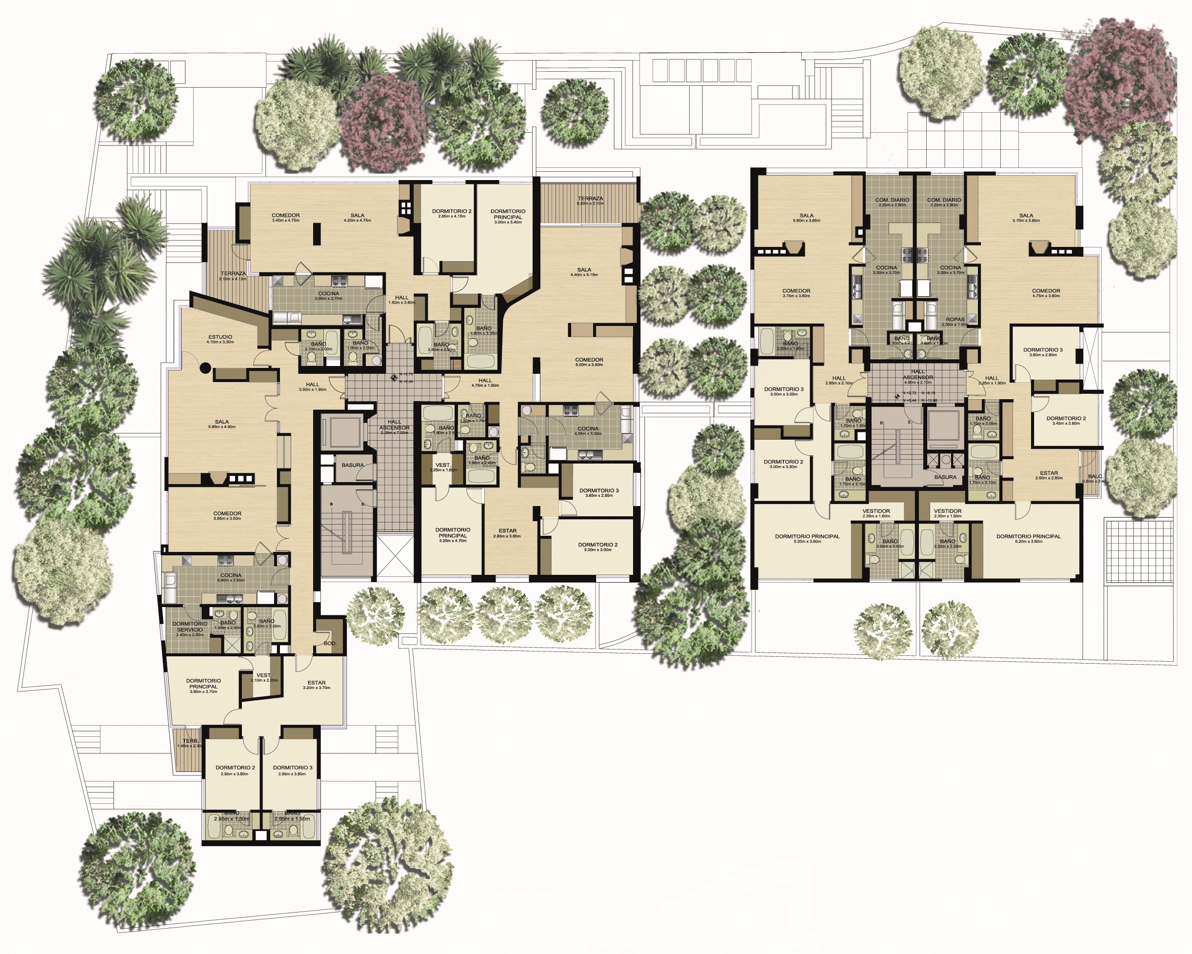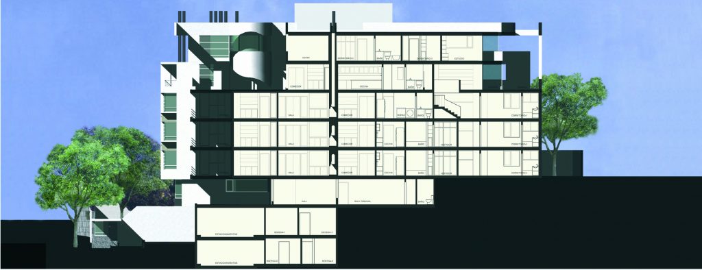 Un programa habitacional de 8 000 m2 para un total de 26 departamentos en un terreno de 2 400 m2.