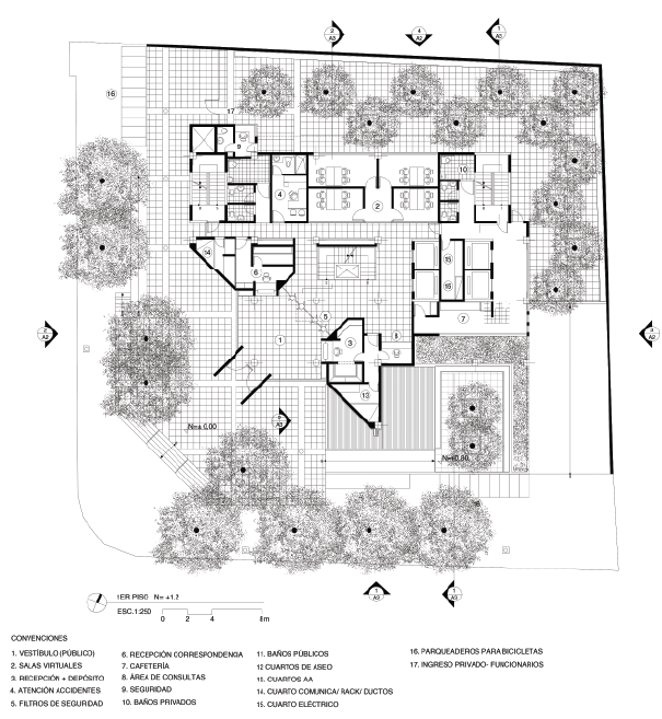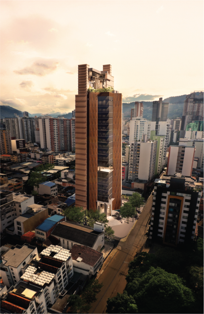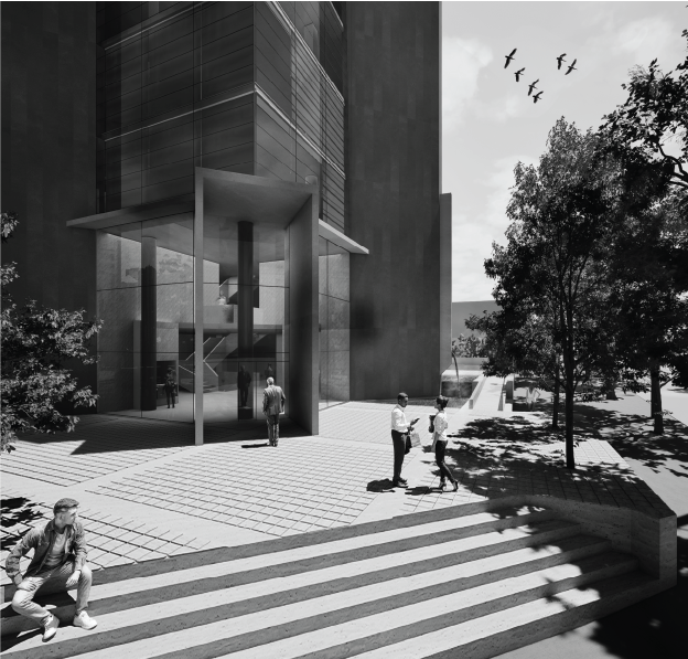 El proyecto busca articular la institución judicial con la ciudad mediante una diagonal que conforma la plaza y establece una frontalidad clara hacia el parque Simón Bolívar. Propone una torre de 24 pisos que combina solidez y transparencia, reflejando los valores de imparcialidad y justicia. La plaza elevada y los espacios verdes integran naturaleza y espacio cívico.