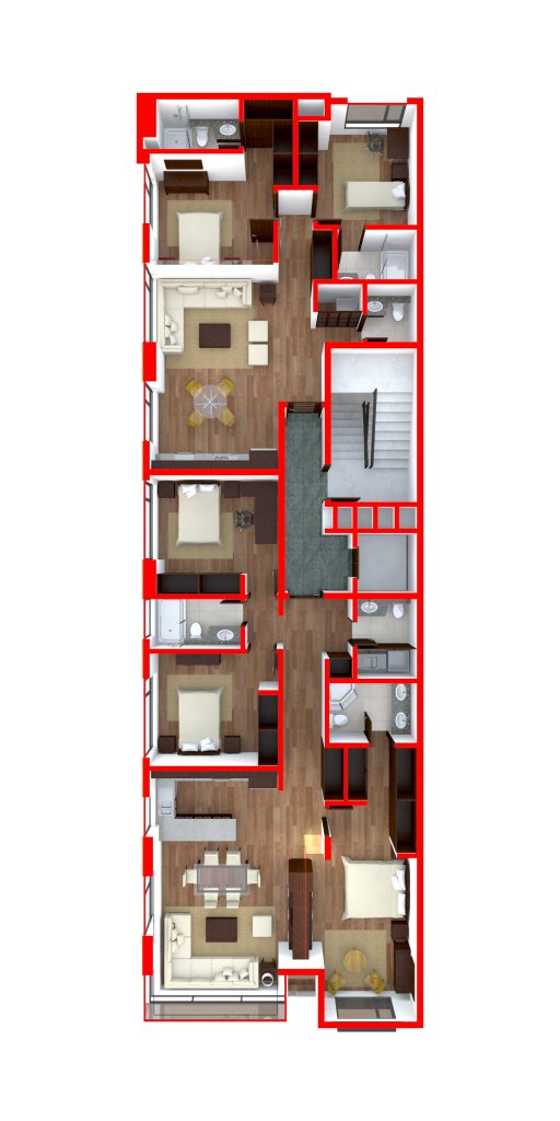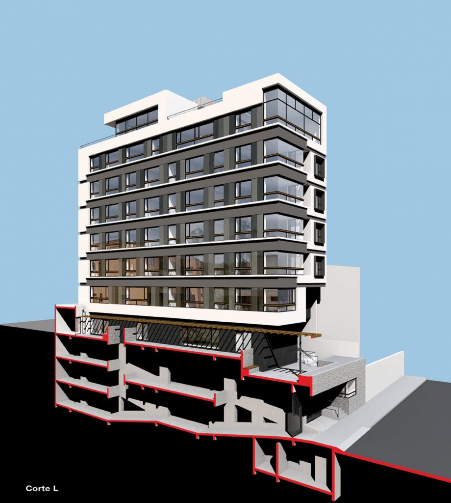 Un programa habitacional de 2.800 m2 para un total de 17 departamentos en un terreno de 408 m2.