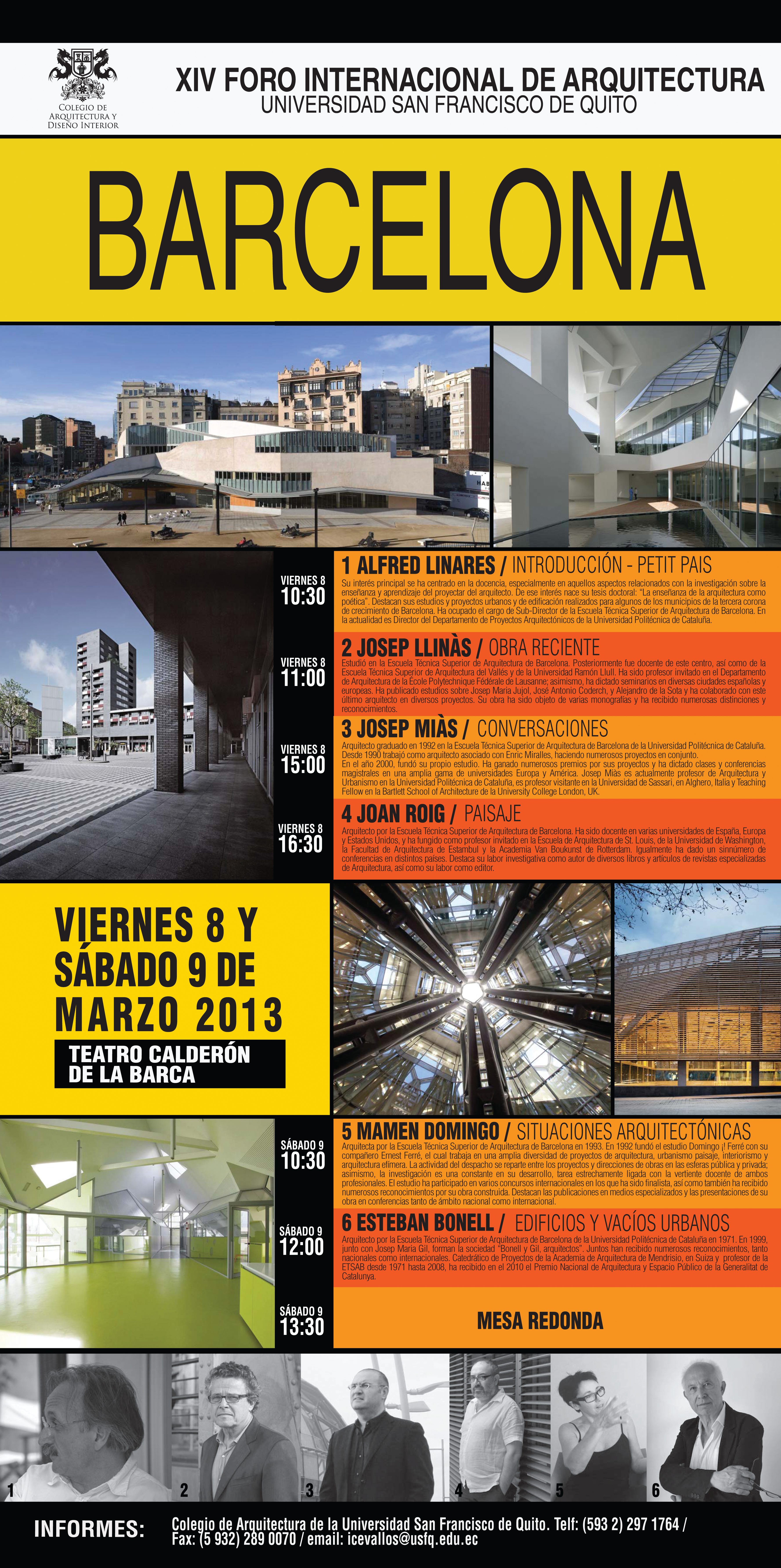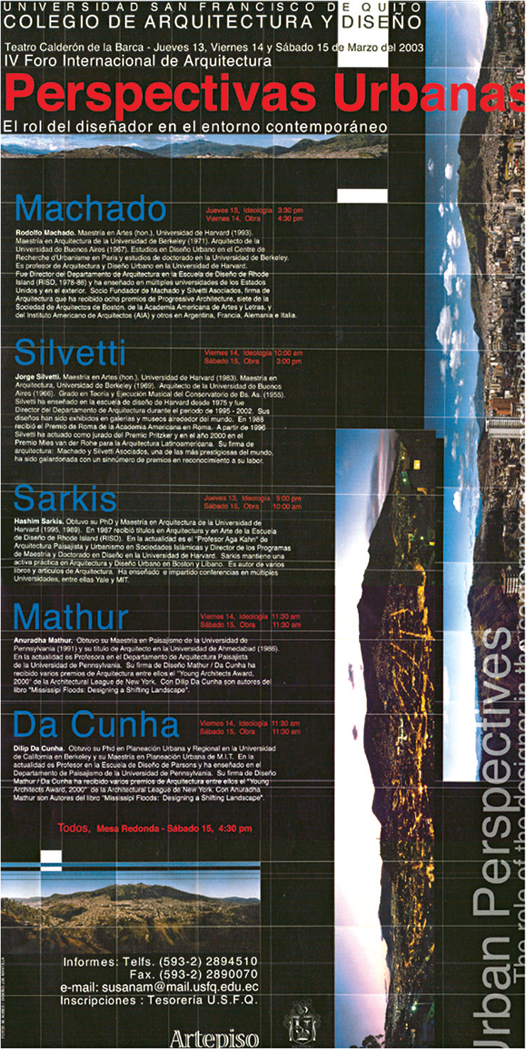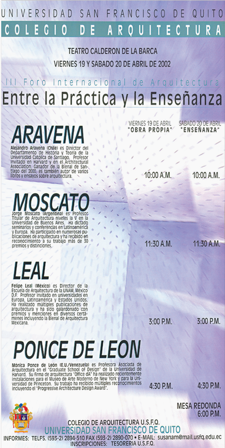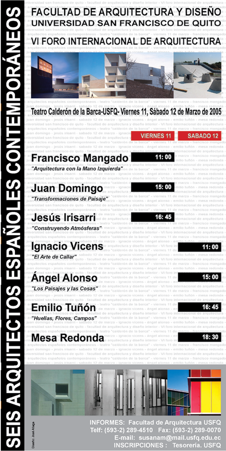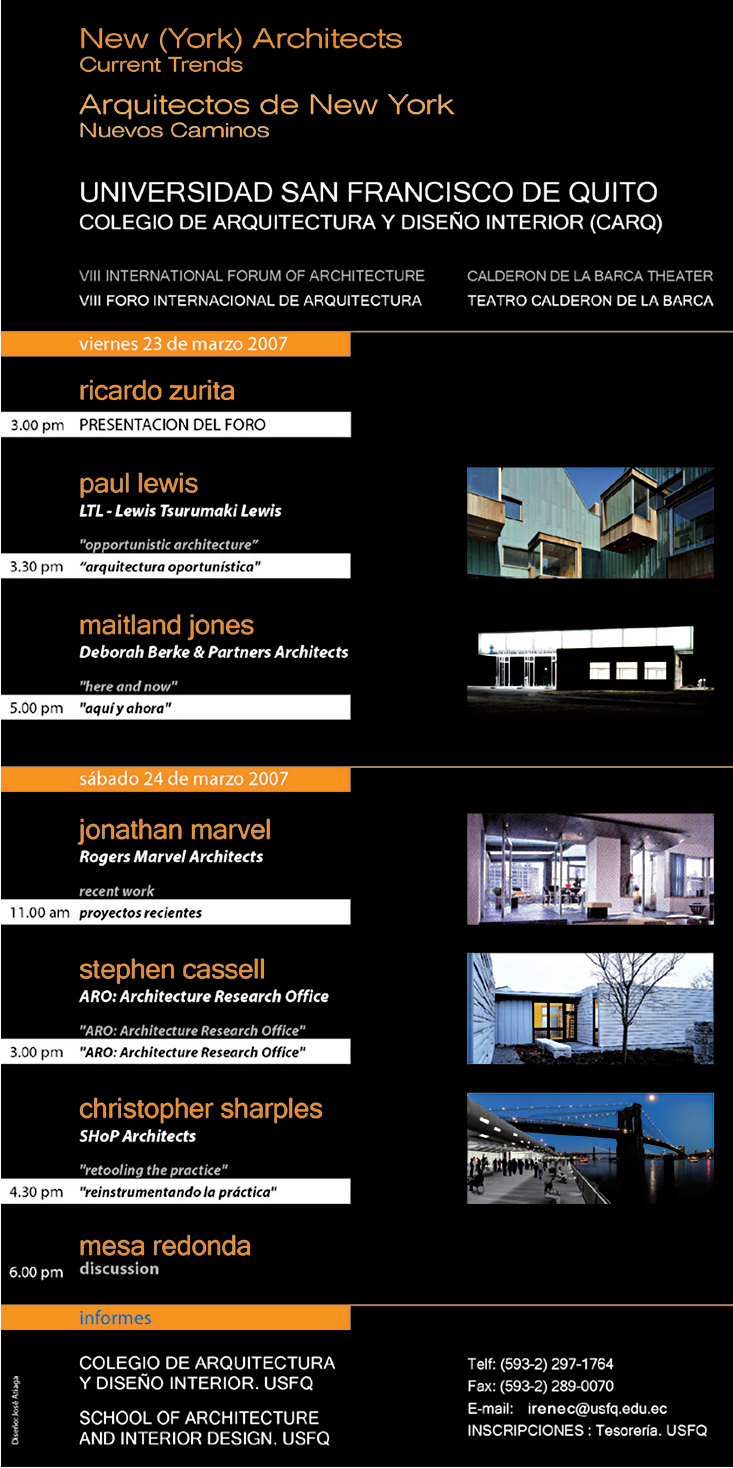 Todos los arquitectos que nos visitaron son de gran prestigio y enseñan en Universidades como Columbia, Harvard, Princeton, Católica de Chile, los Andes de Bogotá, Sao Paulo, Barcelona, etc.