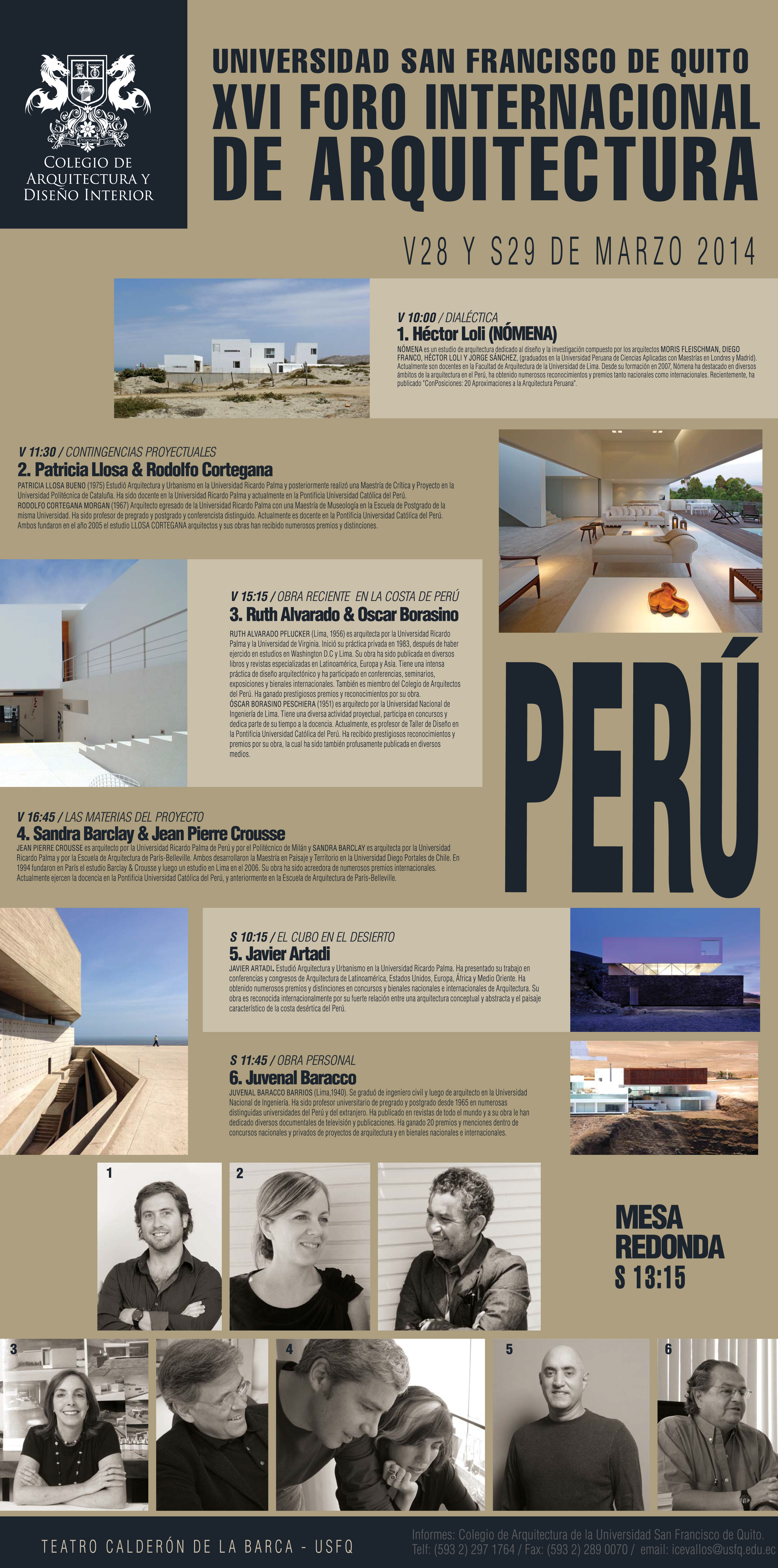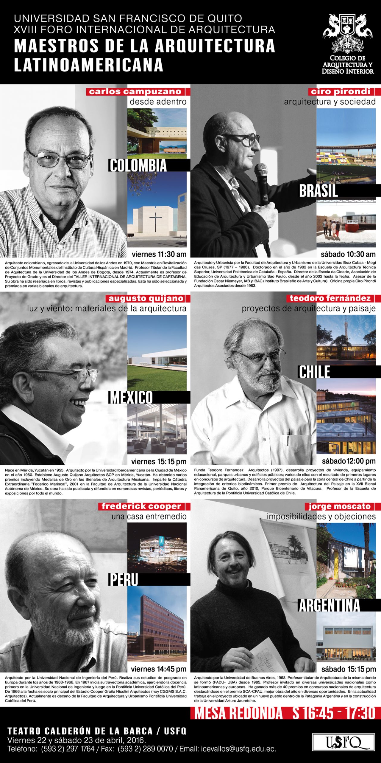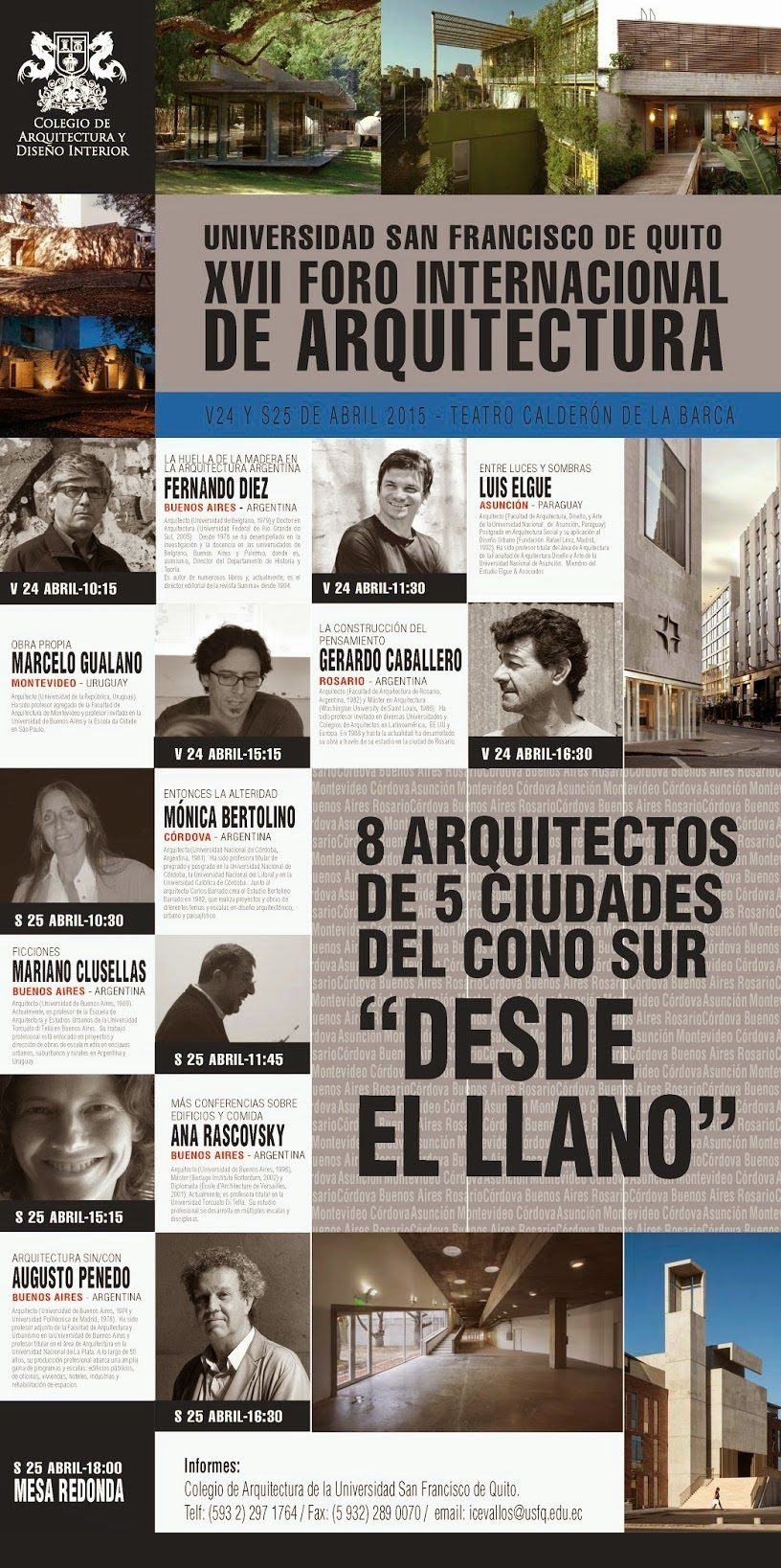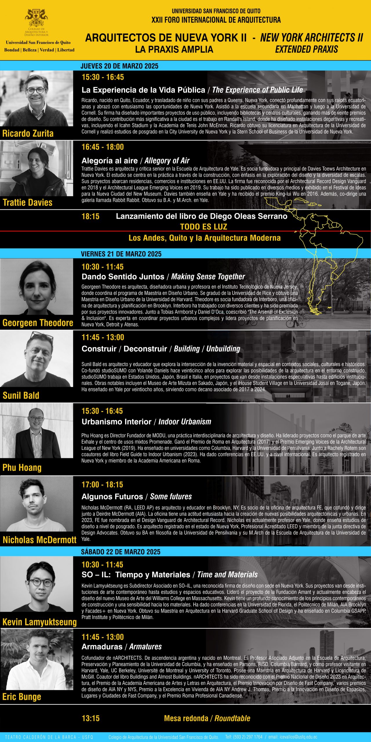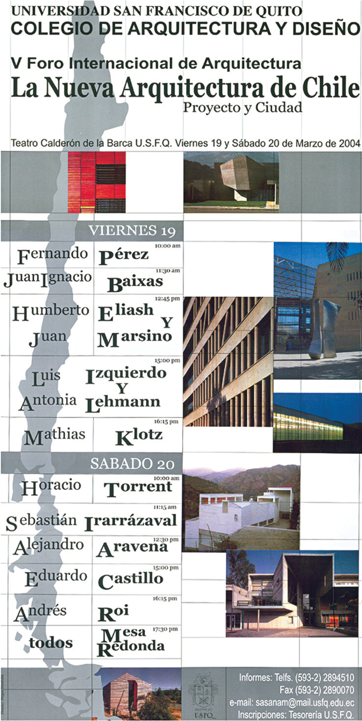 Todos los arquitectos que nos visitaron son de gran prestigio y enseñan en Universidades como Columbia, Harvard, Princeton, Católica de Chile, los Andes de Bogotá, Sao Paulo, Barcelona, etc.