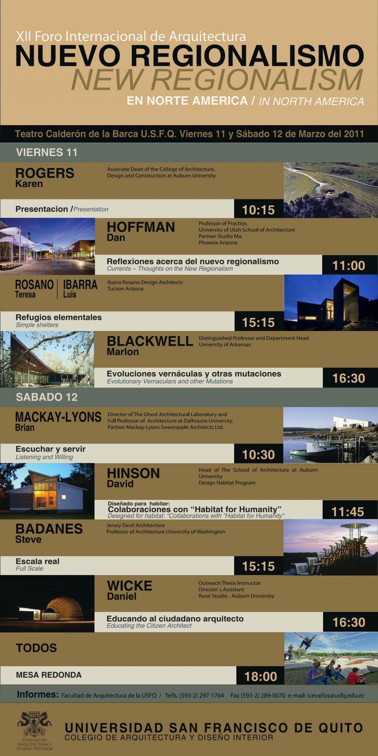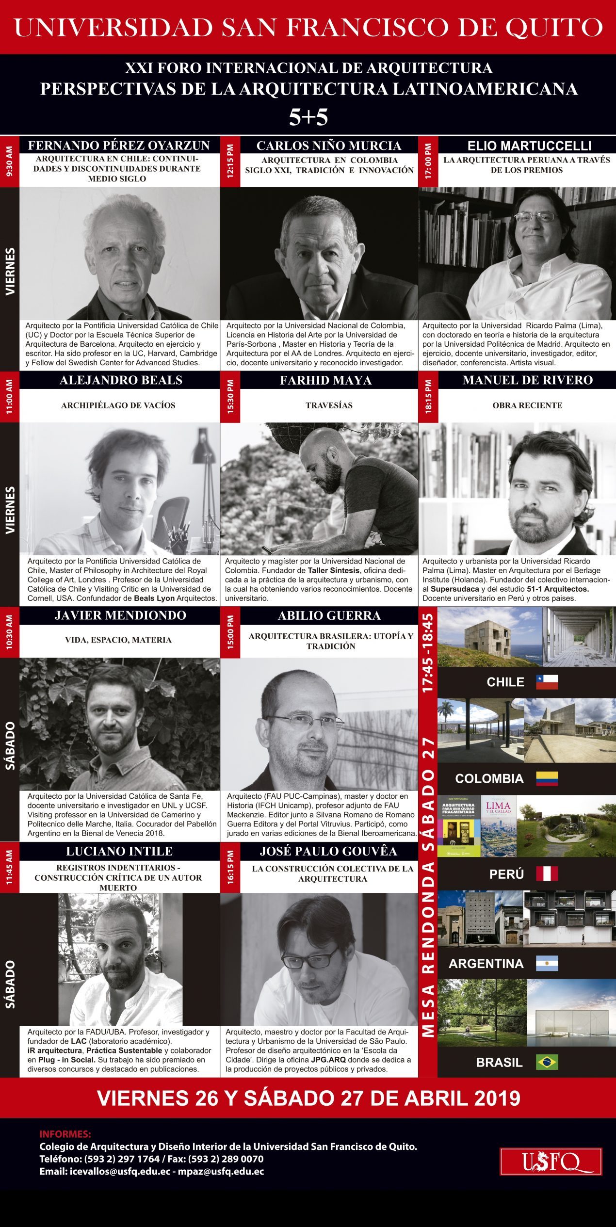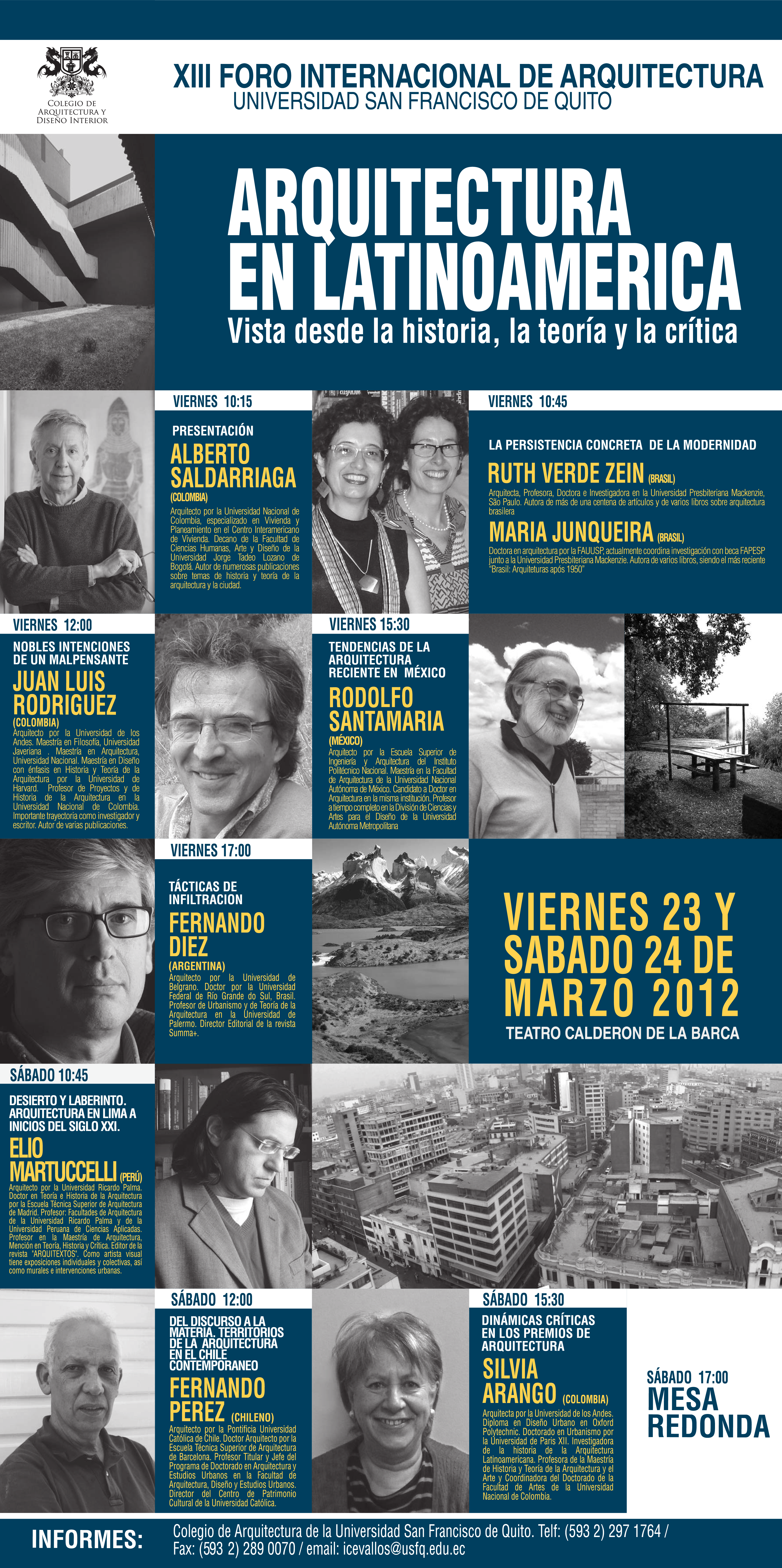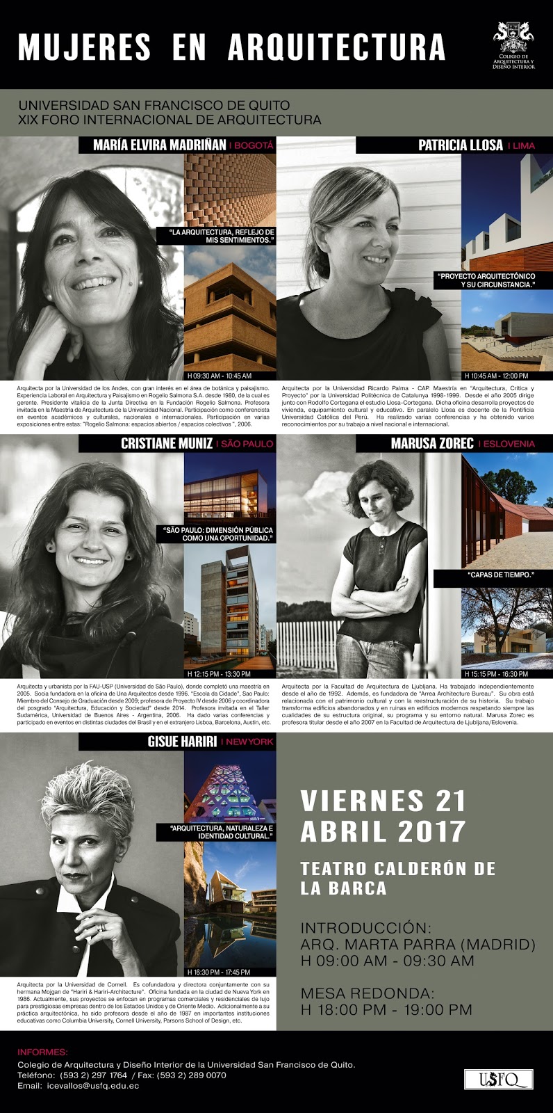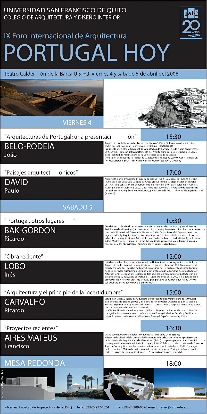 Todos los arquitectos que nos visitaron son de gran prestigio y enseñan en Universidades como Columbia, Harvard, Princeton, Católica de Chile, los Andes de Bogotá, Sao Paulo, Barcelona, etc.