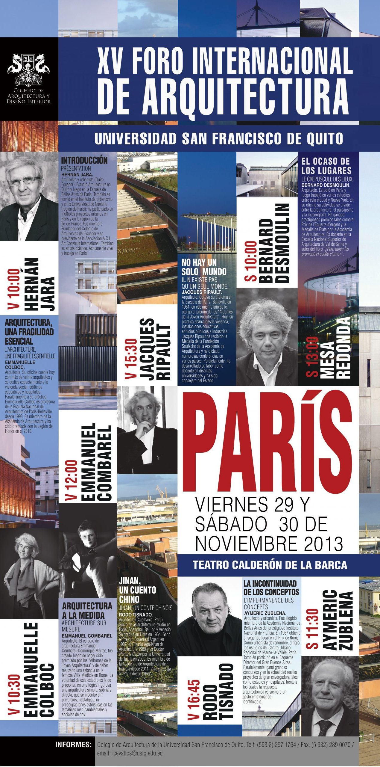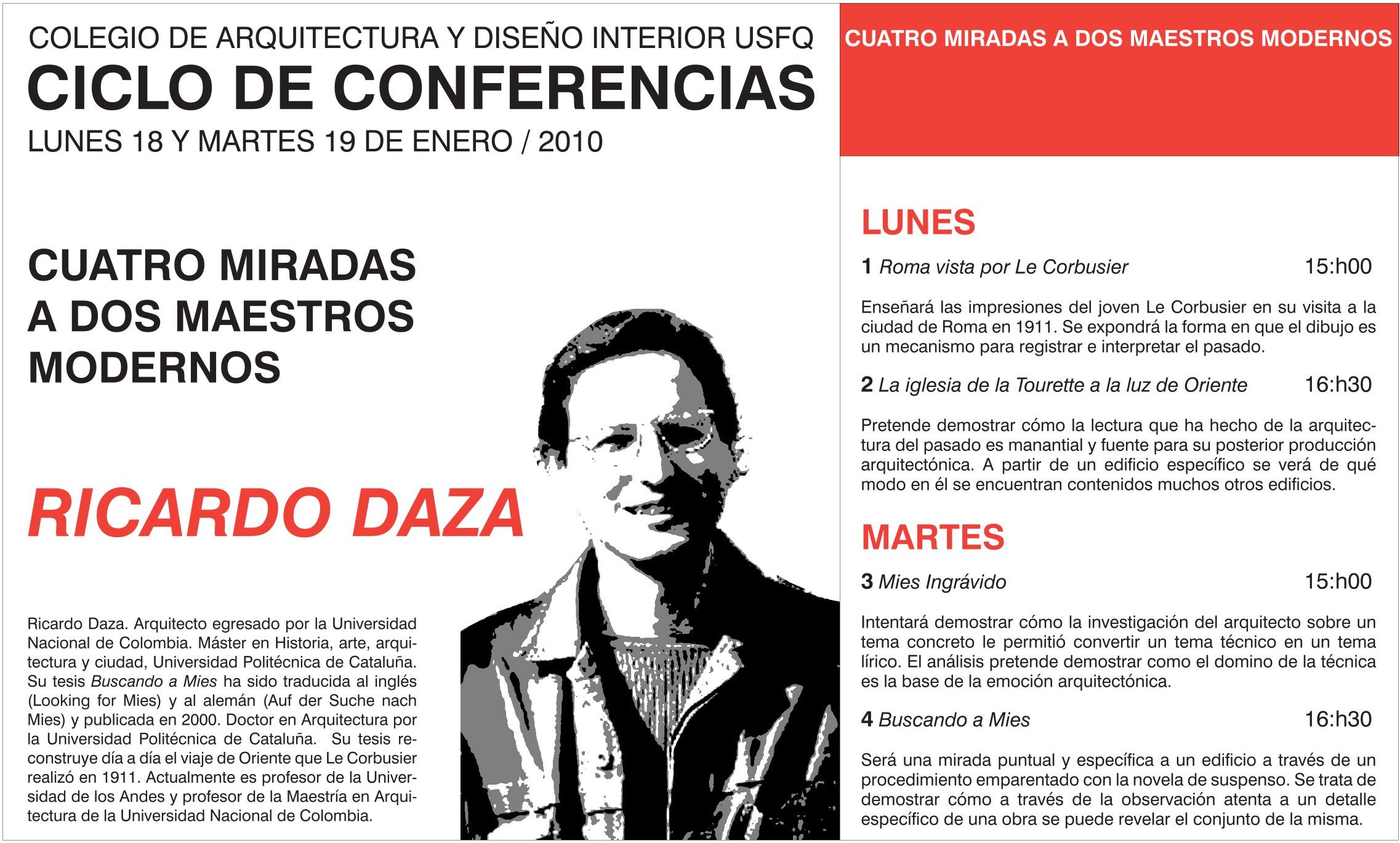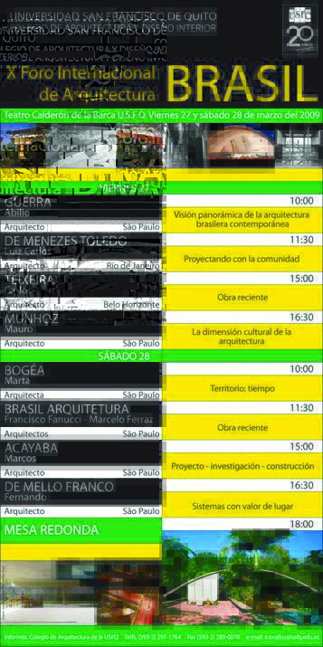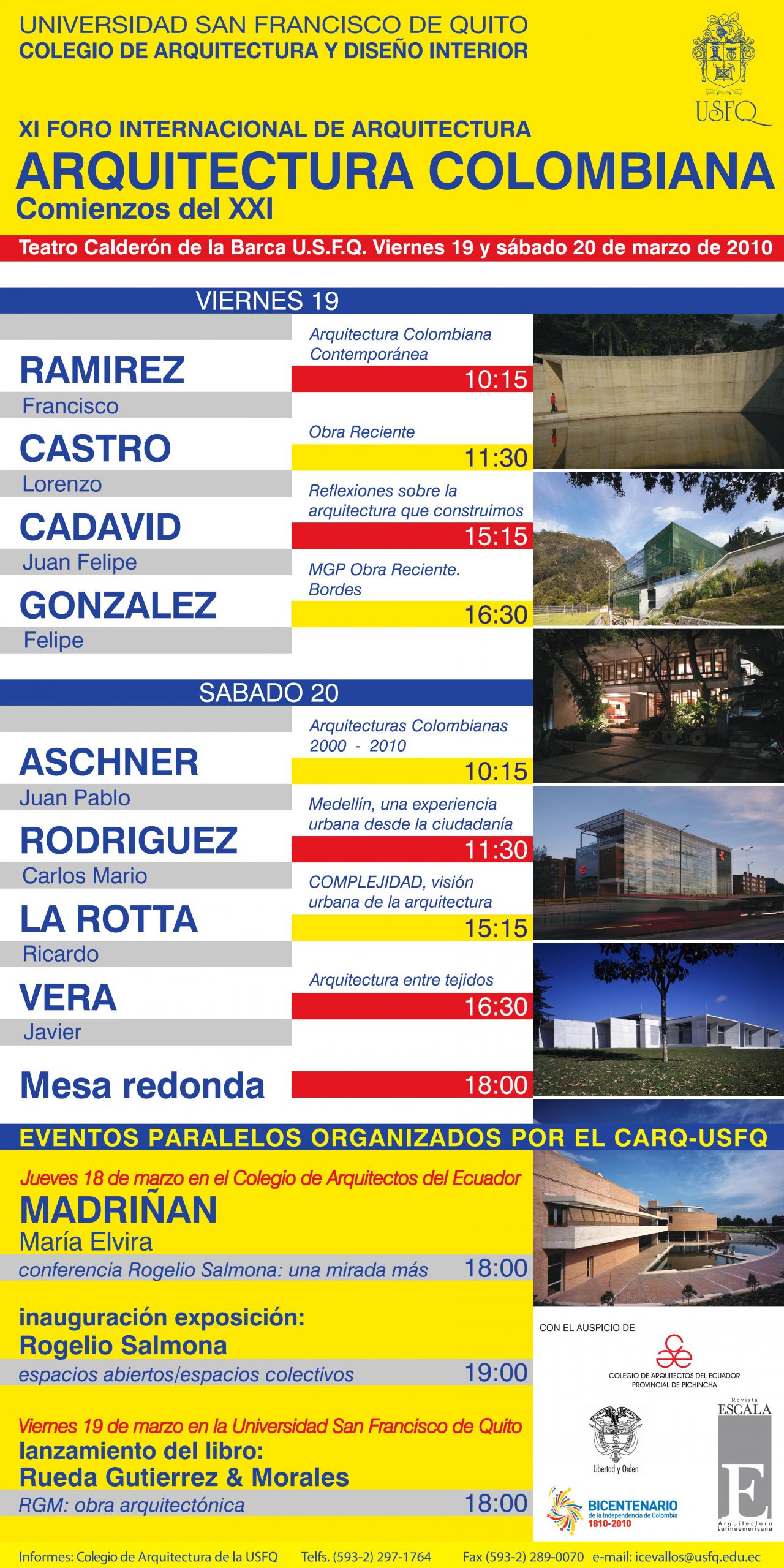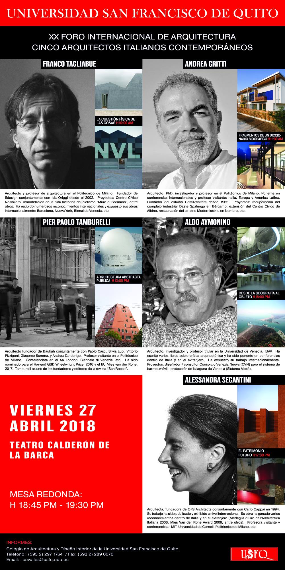 Todos los arquitectos que nos visitaron son de gran prestigio y enseñan en Universidades como Columbia, Harvard, Princeton, Católica de Chile, los Andes de Bogotá, Sao Paulo, Barcelona, etc.