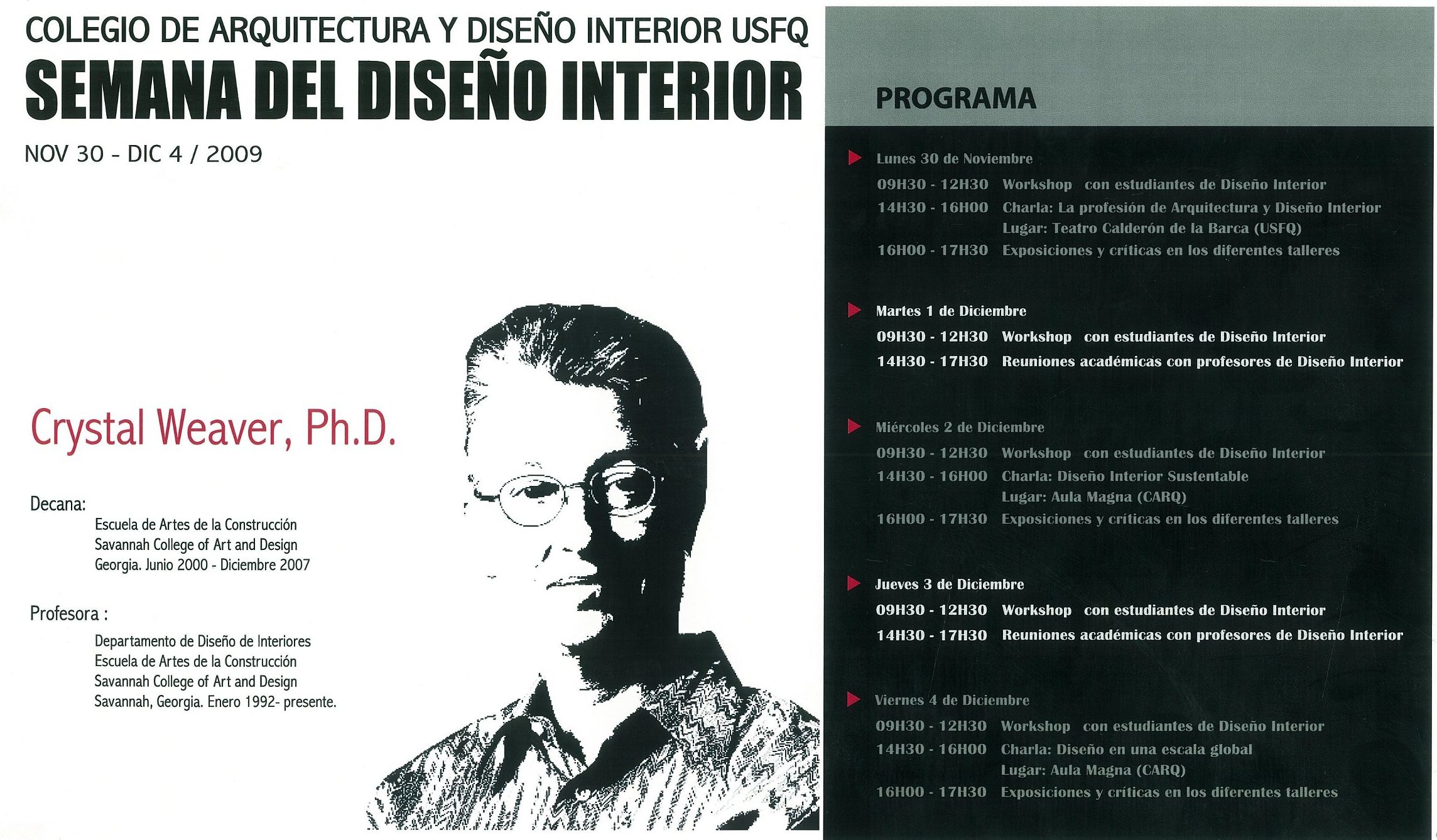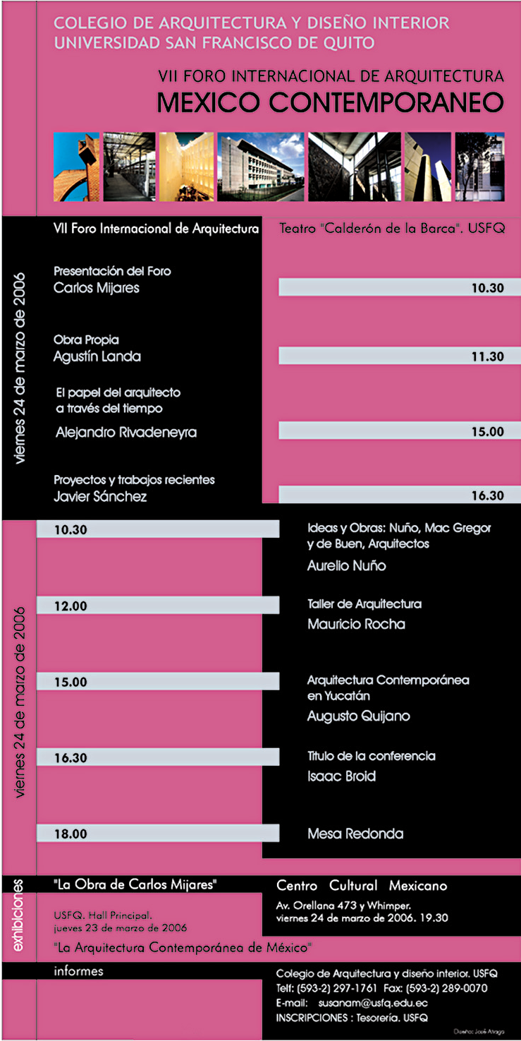 Se realizaron 16 encuentros internacionales públicos sin interrupción. Con la visita de más de 100 arquitectos de talla internacional quiénes han dictado conferencias sobre su pensamiento y obra. Interactuaron con los estudiantes y ofrecieron crítica al trabajo de éstos durante revisiones llevadas a cabo en los talleres de diseño.